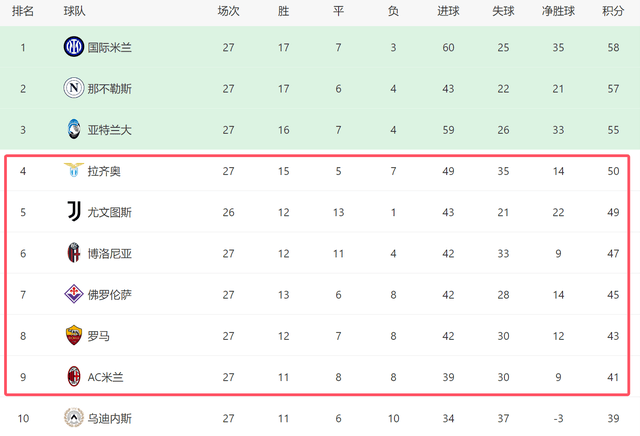 截至目前,在意甲积分榜上,AC米兰已经掉到了第9位,而拉齐奥则反超尤文,重新杀回第四。AC米兰如今落后本场的对手9分之多,再加上他们状态低迷,争四基本无望了。